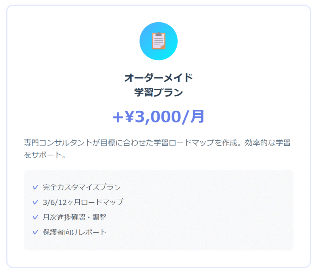 - オーダーメイド学習プラン:+¥3,000