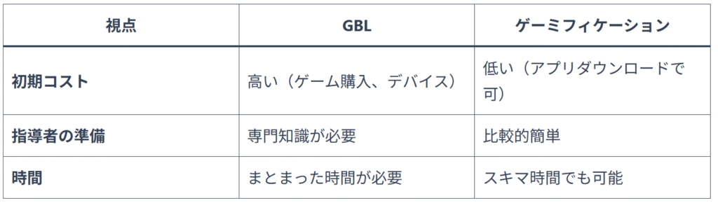 両方とも効果的な学習手法ですが、目的によって使い分けることが重要です。Minecraft Educationの活用事例は、GBLの代表例として参考になります。